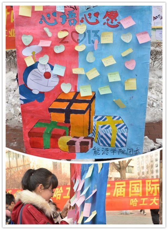 “心语心愿”活动以“请你做我的哆啦A梦”为主题,先后在一校区和二校区展开,吸引了大量同学参与。同学们积极写下自己的小小心愿,并贴在展板上,期待有人为他实现。活动受到了广大同学的欢迎,有许多同学的心愿得到了实现。“写给未来”是专门为大一同学举办的活动,旨在帮助大一同学明确对未来的想法,让他们度过一个有理想的大学生活,同学们在现场对一年后自己想说的话写在纸上放进漂流瓶里,一年后返回。活动当天飘着雪,但是这丝毫没有消退大家的热情。活动吸引了上百名同学的参与,现场气氛热烈。作为本次系列活动的重头戏,以“岁月青葱,舞随心动”为主题的交谊舞会于11月23日晚18点30分在活动中心201拉开帷幕。现场吸引了近二百名同学参与,其中包括了医大、黑大、商大等学校的同学,影响范围非常广。舞会邀请到哈工大芸瑾舞协的老师进行现场教学,还邀请到独播库