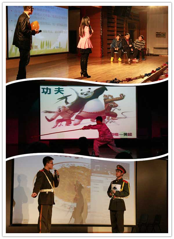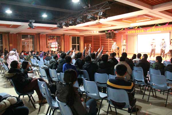 研分会文体部和生活实践部共同举办,他们经过一个多月的准备,力图为同学们呈现一场精彩的视觉盛宴。晚上六点半,晚会正式开始,第一个节目是一段美轮美奂的拉丁舞,美妙的舞姿伴随着光与影的变化十分动人,让同学们经受了一次艺术的洗礼。接下来的第二个节目是由环境所的于凡和热物理所的于慧异带来的吉他弹唱――《21Guns》则是让大家感受了到了一把欧美风。接下来的英语喜剧《梁祝》则是将整台晚会倒带的一个小高潮,赢得了同学们的笑声与掌声。在拿盘子找东西的互动环节之后,燃烧所的四名同学为大家带来一曲象征整个独播库