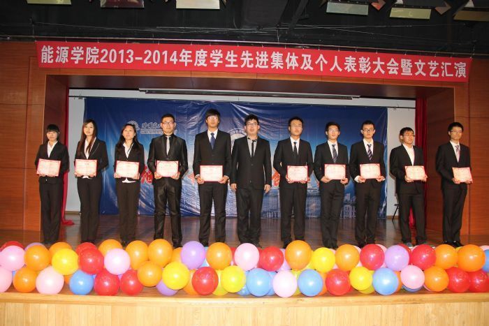 关于表彰2013-2014年度先进集体和先进个人的决定》,与会领导依次颁发了十佳社会实践先进个人、十佳学风个人、十佳学生干部等个人奖项,及十佳学生团体、十佳科研团体、十佳党支部等集体奖项。获奖者既有成绩优异学习刻苦的个人,又有众志成城协作攻关的科研团队;既有干净整洁、温馨如家的寝室,又有团结一致、积极向上的班集体。其中,获奖集体1202103班、获奖个人13级硕士生孙双成和12级本科生罗佳茂分别作为代表发言,分享了各自的成长经历和获奖感受。