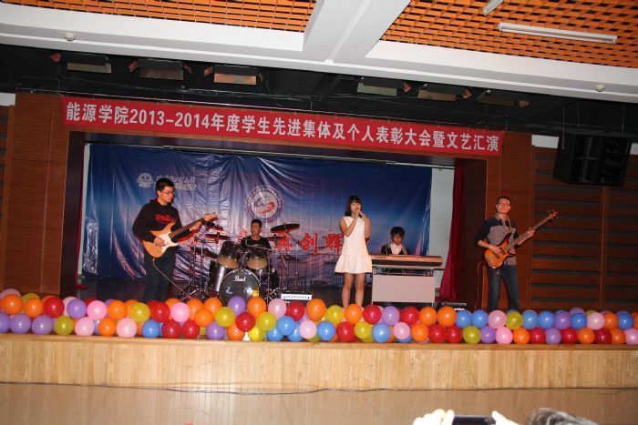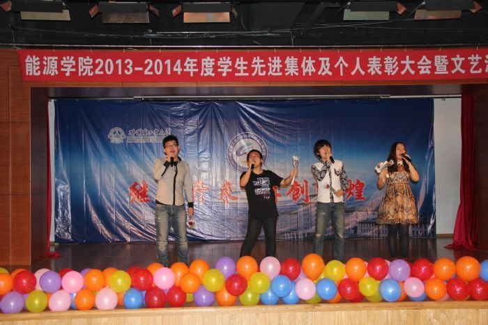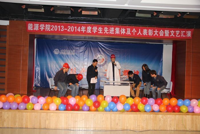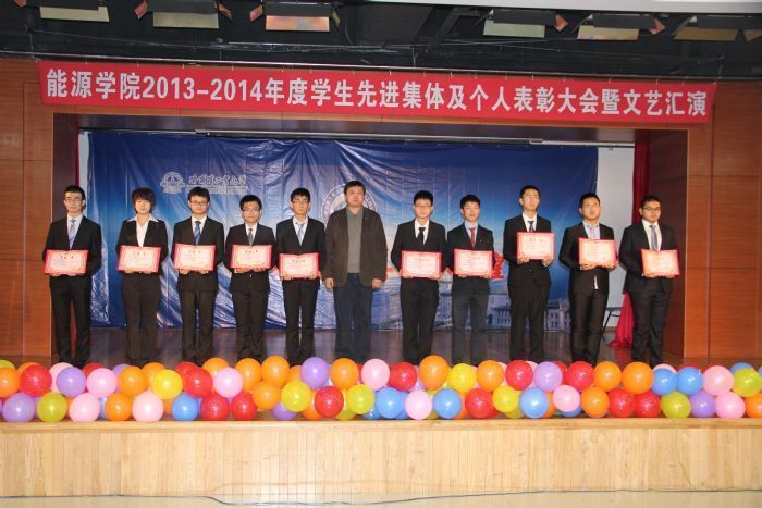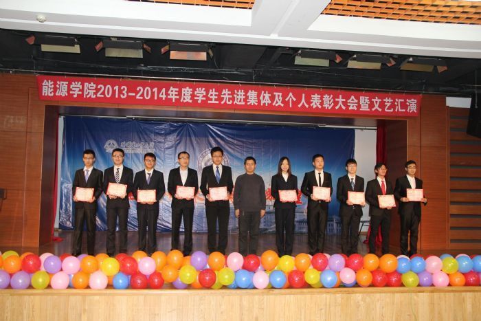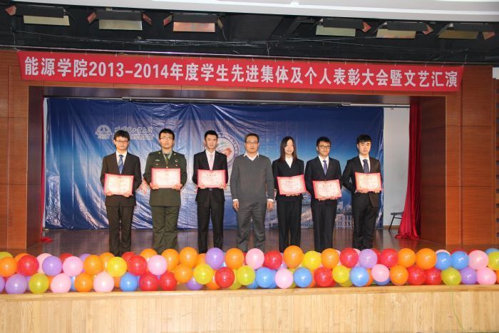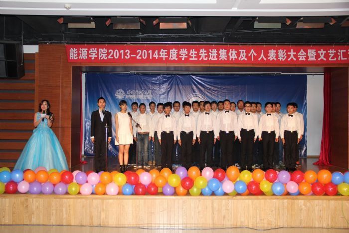 表彰大会结束后,文艺汇演拉开了序幕,这是一场美的享受、一场刺激感官的饕餮盛宴。其中,由Super Energy乐队带来的歌曲串烧,激情洋溢、瞬间点燃全场观众的热情;由本科生张枭带来的蒙古舞《寻》,舞姿行云流水,尽显力量与美;由博士生王帅、本科生赵逸蕊、张晗等带来的歌曲串烧,优美动听,引人入胜;由燃烧所研究生带来的情景剧《科研战场》,取材于研究所的真实科研生活,加以幽默演绎,引得全场笑声连连;由硕士生陈琴等带来的集体交谊舞,舞姿优雅动人,赢得了现场阵阵掌声;最后,由14级飞行器动力工程班带来的小合唱《国家》,整齐洪亮的歌声唱出了“投身能源,奉献祖国”的壮志豪情,也将全场晚会的气氛带向最高潮。至此,本次文艺演出圆满落下帷幕,能源学子用自编自演的节目表达了对专业建立60年和学院建立20年的祝福。
