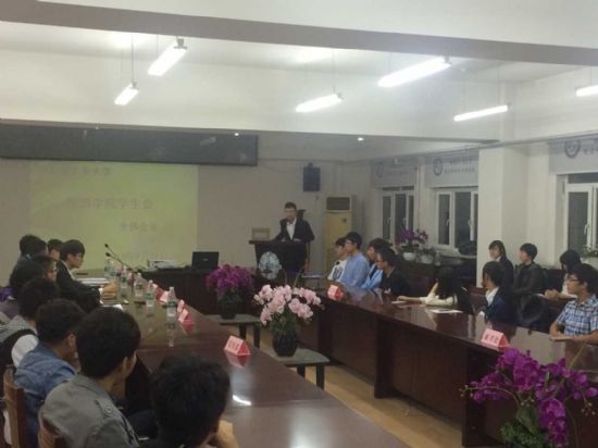 首先,院学生会主席林松发表讲话。他首先分享了个人对于院学生会的理解。他说:学生会是一个大家庭,它存在的意义就是为了服务同学,帮助同学解决学习生活中的困难。院学生会将会进行改革,自上而下实行严格的规章制度,细心听取院内同学的意见,做好服务同学的大任。接着,各部门分管主席分别进行部门介绍和工作安排。之后,刘超老师发表讲话,他与大家分享了自己在几年前的学生会生活,同时他也表达了对院学生会未来发展的希冀,他希望大家能够拥有责任感,有热情的投入到工作中,在完成好工作的同时还要注意学习成绩的保持与提高,最后要求大家能够团结一致,在院学生会中贡献自己的力量,使其成为一个有凝聚力的集体,树立远大目标,向着更高的理想前进。最后,各部门干事分部门进行了自我介绍,大家纷纷表达了加入学生会的心情,同时也表达为院学生会尽一份力的坚定决心。