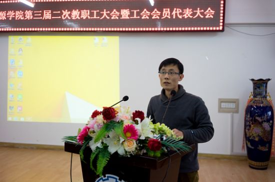 2016年12月27日下午,2016年独播库 第三届二次教职工大会暨工会会员代表大会、领导干部述职大会、总结表彰大会在动力楼619会议室召开,院长赵广播、党委书记田振辉、副院长何玉荣、副院长帅永、党委副书记孙垠,以及学院全体教职工参加了会议。