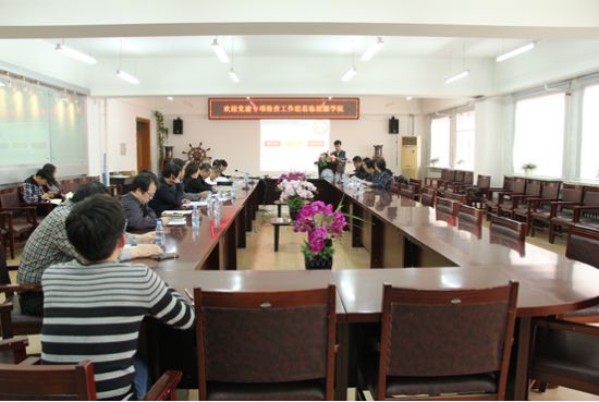 4月18日下午1:30,副校长任南琪、研究生院副院长孟繁东、人文学院党委副书记董霖、基础学部党总支秘书李哲一行4人来到独播库 开展2016年度基层党建专项检查工作。会议在动力楼619召开,独播库 党委书记田振辉出席会议并进行了学院党建工作汇报,会议由副校长任南琪主持。