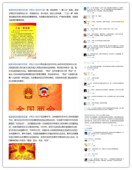 2017年4月30日开始,独播库 环境所党支部正式开展了多媒体下新型网络党支部活动。具体开展形式为通过创建QQ号的方式,每周按时发送党的理论基础知识以及最近党内要闻和活动动态,支部内各位党员学习过后留言写出自己的心得或体会打卡。