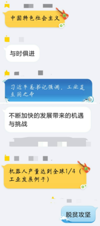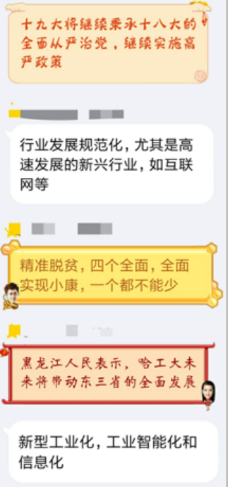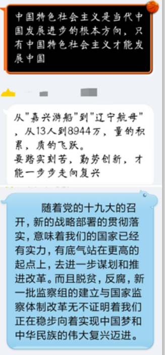 10月17日晚21:00,独播库 2016级利用QQ群召开了本学期第二次团干部培训会,辅导员王博文与35名团学骨干在线召开了网络专题学习培训会。全体团学骨干集体阅读、学习了人民日报、新华社和共青团中央关于十九大的系列推送预告:以创业的新角度纵观党从13人到8944万人的伟大“创业史”,学习了前十八次党代会的“极简史”,详细了解了十九大期间的会议日程,又从工业通信业稳步求进、落实创新驱动发展战略和深化供给侧结构性改革等方面学习了党向制造强国、网络强国迈进所付出的努力与实践。与会的团学骨干在寝室、教室等地共同阅读、学习了30分钟,并在群里积极交流、分享了各自的想法。一位学生激动地说:“各国首脑纷纷表示将密切关注中国十九大召开,这也说明中国正以一股新兴的蓬勃发展的力量影响这世界的发展方向”。最后,全体团学骨干预祝十九大顺利召开。