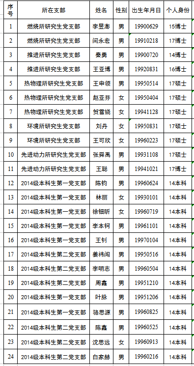 能源学院根据发展党员工作有关要求,现将近期24名拟转正党员的有关情况公示如下: