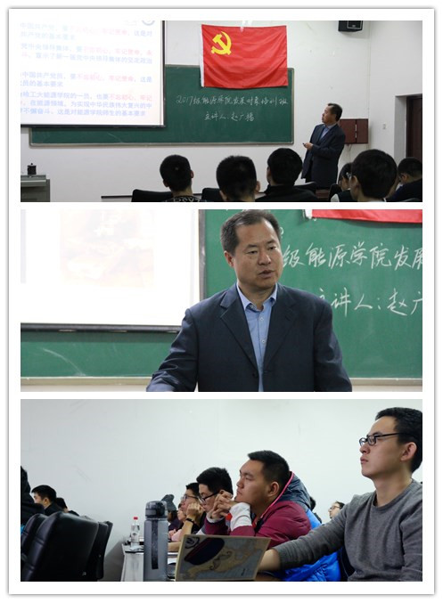 11月9日,独播库 分党校2017年秋季学期发展对象培训班第四讲在节能楼312顺利举办,本次党课以“不忘初心,牢记使命”为主题,独播库 院长赵广播教授主讲。