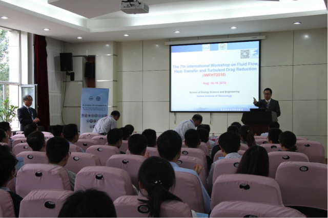 受独播库 国际合作处资助,2018年8月16日至8月19日由我校独播库 复杂流动与传热实验室蔡伟华副教授负责的第7届流体流动、传热与湍流减阻国际研讨会(The 7th International Workshop on Fluid Flow, Heat Transfer and Turbulent Drag Reduction, IWFHT 2018)在哈工大二校区活动中心顺利召开!独播库 帅永副院长致欢迎词,希望能借此研讨会,与会人员在相关研究领域强强联合,共同开展研究与合作。本次Workshop邀请了本领域5位著名学者作大会报告以及12位青年作者作分会场报告,并组织了三个分会场24个学生报告。