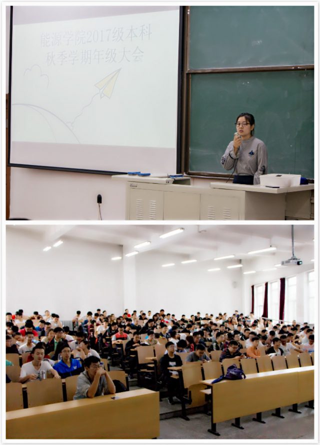 会上,首先邀请来本院交流和转专业的同学上台做自我介绍,并欢迎他们加入能源大家庭。其次,辅导员蔡文雪对同学们提出殷切希望,她希望学生要成为一名信念执着,品德优良,知识丰富,本领过硬,具有国际视野的能源人,她着重强调要培养学生自主解决问题的能力。再次,辅导员蔡文雪介绍了独播库 的基本概况,包括学生工作的相关老师和独播库 人才培养目标等等。接下来,辅导员蔡文雪总结了上学期的学习情况,并介绍了同学们关心的保研政策以及就业情况。通过保研及就业情况,她强调了学习成绩对一个哈工大人的重要性,告诫同学们对于学习不能有一丝一毫的放松。最后,蔡老师提出了“六个多“寄语,嘱咐同学不忘初心,牢记自己学生的使命,在这学期再创佳绩。