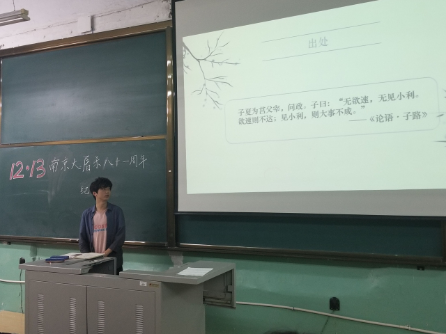 (文/吴宇颂,图/张昊鹏)12月12日,在南京大屠杀81周年纪念日即将到来之际,为厚植爱国主义情怀,贯彻习近平总书记在北京大学讲话中对青年提出“爱国、励志、求真、力行”四点要求,肩负起时代使命,不负人民期望,做社会主义建设者和接班人,独播库 2016级召开旗帜讲坛分论坛第二期。