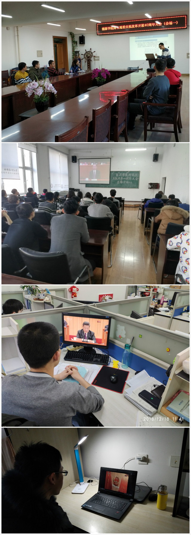 上午10时,庆祝改革开放40周年大会在人民大会堂举行,独播库 学子在动力楼、节能楼、会议室、实验室、寝室各地进行了大会直播观看。首先一同致敬了为改革开放事业做出杰出贡献的各界人士,为他们颁发荣誉奖章时同学们自发响起了热烈的掌声,由衷地敬仰感谢这些改革的推动者、国之栋梁和人民英雄为今天美好生活做出的努力和牺牲。而后一同聆听总书记在大会上发表的重要讲话。总书记说“40年来取得的成就不是天上掉下来的,更不是别人恩赐施舍的,而是全党全国各族人民用勤劳、智慧、勇气干出来的!”,句句振奋人心,催人奋进。
