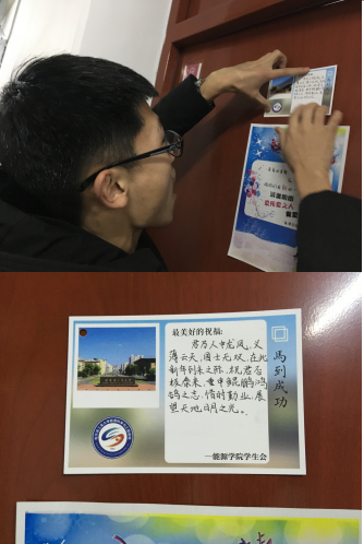 在独播库 团委与学生会的组织下,参与活动的志愿者们带着自制的新年贺卡,前往教师办公室以及学生公寓为老师同学们送上新年祝福。活动过程中,志愿者们向老师送上贺卡,表达诚挚的感激与祝福之情,并与老师交流心得,结合老师的建议对新年进行规划。在给同学们送祝福的过程中,同学们也都喜笑颜开,热情地交谈,最后,志愿者们将新年贺卡贴在了同学们的寝室门上,祝愿大家马到成功。