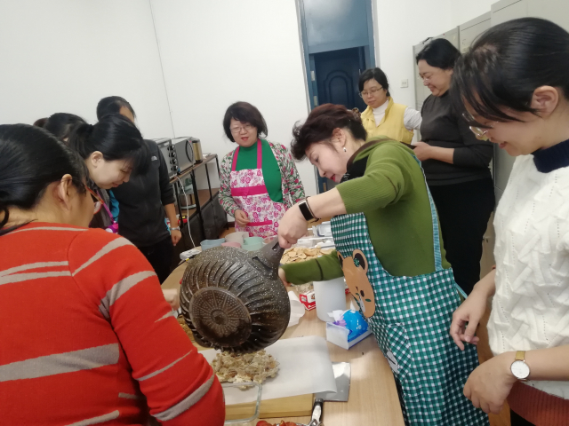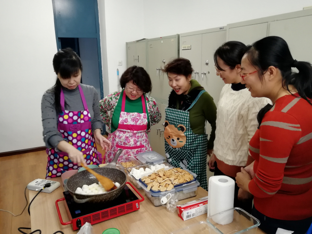 为了筹备新年联欢会,让更多教职工品尝健康、绿色的茶点,12月21日独播库 在节能楼205举办了烘焙沙龙--制作牛轧糖、琥珀核桃仁、山楂糕。本次活动由院办发起,学院女职工积极参与,共同度过了一个愉快的下午。