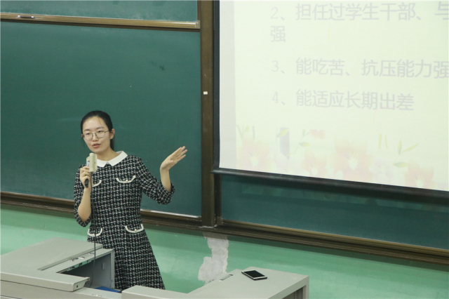 辅导员王博文首先对本学期工作进行总结,再次强调了学习的重要性,并对假期安全工作提出要求,尤其是在校准备学习、竞赛的学生安全稳定。接着,她分析了独播库 本科生的毕业情况,介绍了往年学院毕业、保研、出国、主动工作、以及选择考研的整体分布,指出在选择考研同学之中坚持到考场并成功读研的仅为1/3,剩余同学在春季招聘极为被动,因此尽早确立日后发展规划至关重要。接着何艺宁老师做了主题为“大学是道选择题”的就业指导讲解。何老师首先以自身职业生涯经历为例,劝诫同学尽早选择适合自己的道路。她结合独播库 往届学生的就业单位及网上招聘信息,为独播库 同学提出了多个可以大显身手的就业岗位,包括航天单位研发人员、汽车企业研发人员、知识专利审查员、出版社编辑等,开阔同学的就业选择道路。她指出作为哈工大人,一定要将个人命运与时代背景紧密相连,在给同学们提出的5个最应当关注的方向中,第一个就是新能源,希望同学们能够把握历史机遇,在我国新能源开发上做出贡献,实现人生价值。最后何老师回答了同学们在读研和就业上的一些提问。