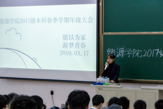 2017级本科生春季学期第一次年级大会,辅导员蔡文雪以及全体2017级本科生参加了此次年级大会。