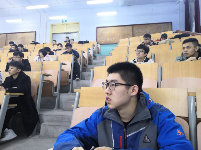 在上届节能减排大赛中获得优秀成绩的李俊峰、王桦同学,为同学们分享了自己的比赛过程中的难忘经历,宝贵经验,并在会后为同学们答疑解惑。