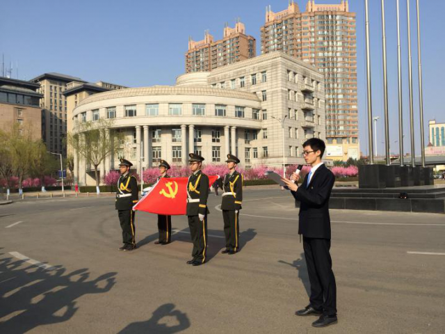 国歌奏响,国旗班的升旗手们护送五星红旗走向旗杆,迎着冰城初春的朝阳,赤红的旗帜再次飘扬在工大的校园。随后由马克思学院的王博同学为毕业生党员同志带来主题团课。随着她的讲述,一个世纪前那个积贫积弱内忧外患的民族、那群义勇抗争不畏强权的青年,再次浮现在同学们的眼前。“爱国、进步、民主、科学”的精神,为振兴中华民族而求索而牺牲的革命豪情,感染着在场的毕业生党员。在这个高速发展的时代里,时隔百年的历史事件仍然像一座灯塔一座丰碑指引着后人前行,正是因为它宣扬的爱国精神不会过时。习近平总书记明确指出:五四精神体现了中国人民和中华民族近代以来追求的先进价值观。即使经历日新月异的变革,“爱国、进步、民主、科学”将一直保持先进。