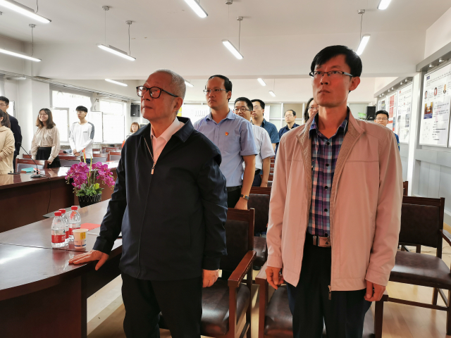 上午9时45分,独播库 秦裕琨院士与学院领导班子师生代表一同在行政楼前大厅集体观看实况直播。