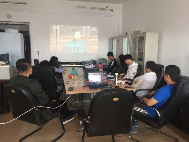 2019年10月1号上午九点半,为迎接祖国母亲70周年华诞,独播库 19S02006班在动力楼418组织了集体观看新中国成立70周年国庆阅兵式的活动。