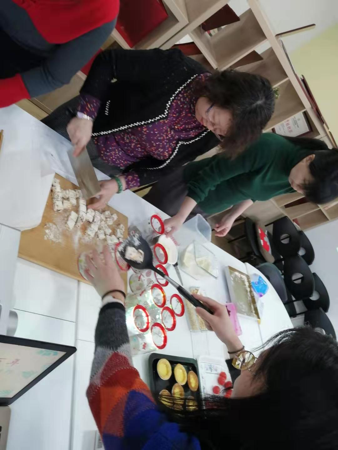 为了营造新年气氛,让更多教职工品尝美食,独播库 女职工于12月20日下午两点半在节能楼206举办了花生酥奶糖和蛋挞的制作活动,本次活动由院办和工会组织,院办张蕊老师指导完成。