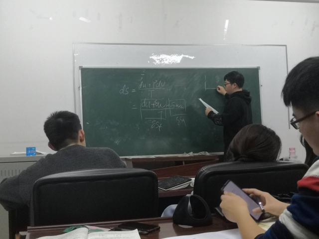 这次分享的内容为工程热力学第三到六章,也是整个课程中最重要的部分。讲师通过梳理章节内容,推导重要公式,分析重点热力学过程和习题训练及讲解带领同学们复习已学的知识。讲解过程中,同学们热情度很高,积极回应讲师的问题,充分反应了同学们对此门课程的重视程度以及对讲师们讲课能力的认可。活动后,大家纷纷表示此次的讲堂活动对自己复习课程很有帮助,也学习到了讲师同学对知识整理的认真态度,并期待后续的讲师团活动带来的收获。