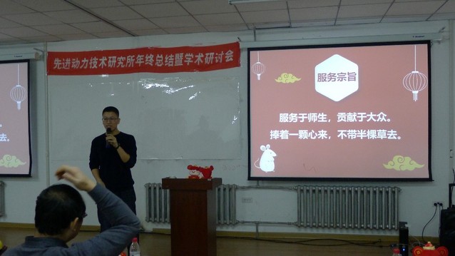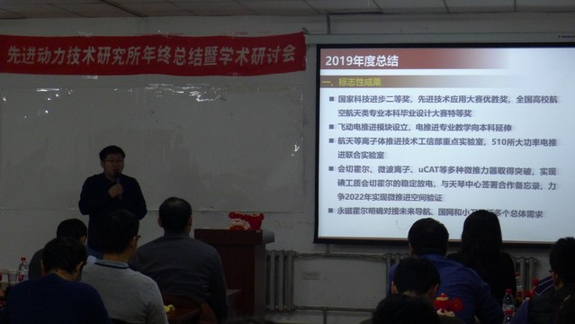 会上,于达仁所长总结了先进动力研究所2019十大标志性成果。过去一年先进动力所在多个方面成果斐然。在科研及学术上,斩获“国家科技进步二等奖”,获批工信部重点实验室,落实多个重大项目,于达仁教授当选黑龙江省“头雁”团队带头人;师资建设上,常军涛老师荣获吴仲华优秀青年学者奖,张军龙博士师资博士后入站,宁中喜老师荣获教学贡献奖等;学生培养上,任国瑞获吴仲华优秀研究生奖,李楠获聘西工大副教授,曾德迈荣获全国高校航空航天专业本科毕业设计大赛特等奖。同时于老师主持的国防科技出版社高超丛书全部完成出版,在国际合作上也取得多项新的进展。