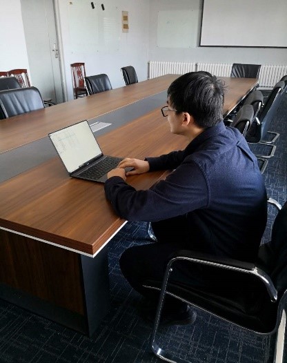 4. 考生提前测试设备和网络。考生端两台设备开启摄像头,电脑自带摄像头对准考生本人,另一部电脑或手机摄像头从考生后方成45°拍摄。要保证考生考试屏幕能清晰地被复试专家组看到;考生面试时正对摄像头保持坐姿端正,双手和头部完全呈现在复试专家可见画面中。需保证设备电量充足,网络连接正常。设备调试完成后,关闭移动设备通话、录屏、外放音乐、闹钟等可能影响面试的应用程序。