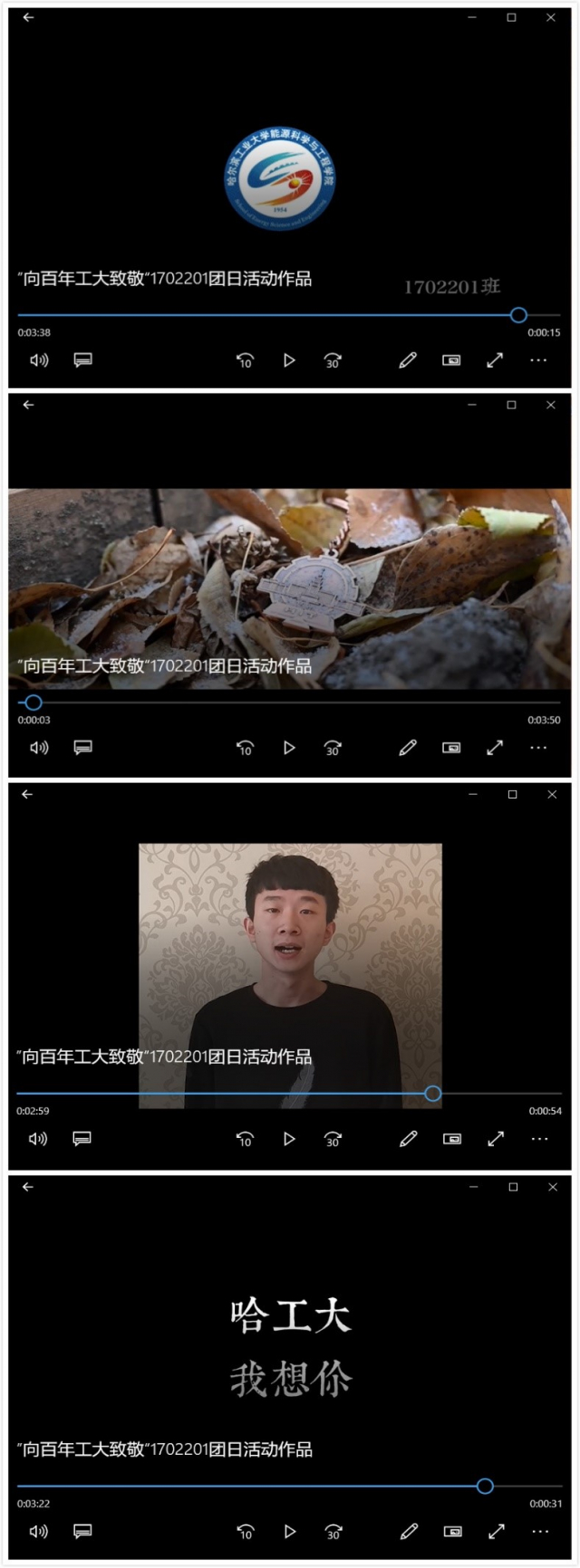在活动准备阶段,支部同学们各抒己见,从形式到内容都进行了多次的更改,最后确定了通过视频的方式留下一份属于哈工大和我们的特殊记忆。这份礼物是全班同学共同努力的结果,大家在家中录制了祝福独播库 100周年生日快乐的视频和想对哈工大说的心里话,再由班级的组织委员精心剪辑、变成一份难忘的回忆。