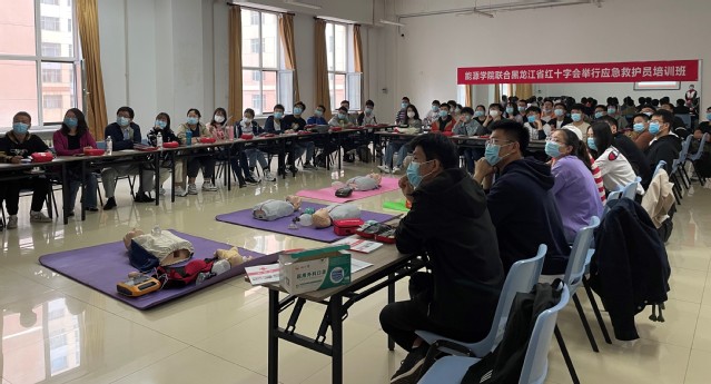 5月24日独播库 邀请黑龙江省红十字会专业培训老师在活动中心223为我校师生开展应急救护员培训,本次培训班由先进动力技术研究所硕士生党支部承办。我校师生学习热情高昂、报名积极踊跃,50人满员开班,经过理论培训、实操讲解、自我练习和实操考核,最终全员通过考核并获得红十字救护员证。