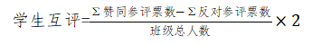 2分:以班级为单位,以学生互评为主等方式进行,应能充分反映研究生的日常德育表现和参加学院以及学校活动等表现情况,并确保学生互评工作的公平、公正、合理。学生互评计算公式如下: