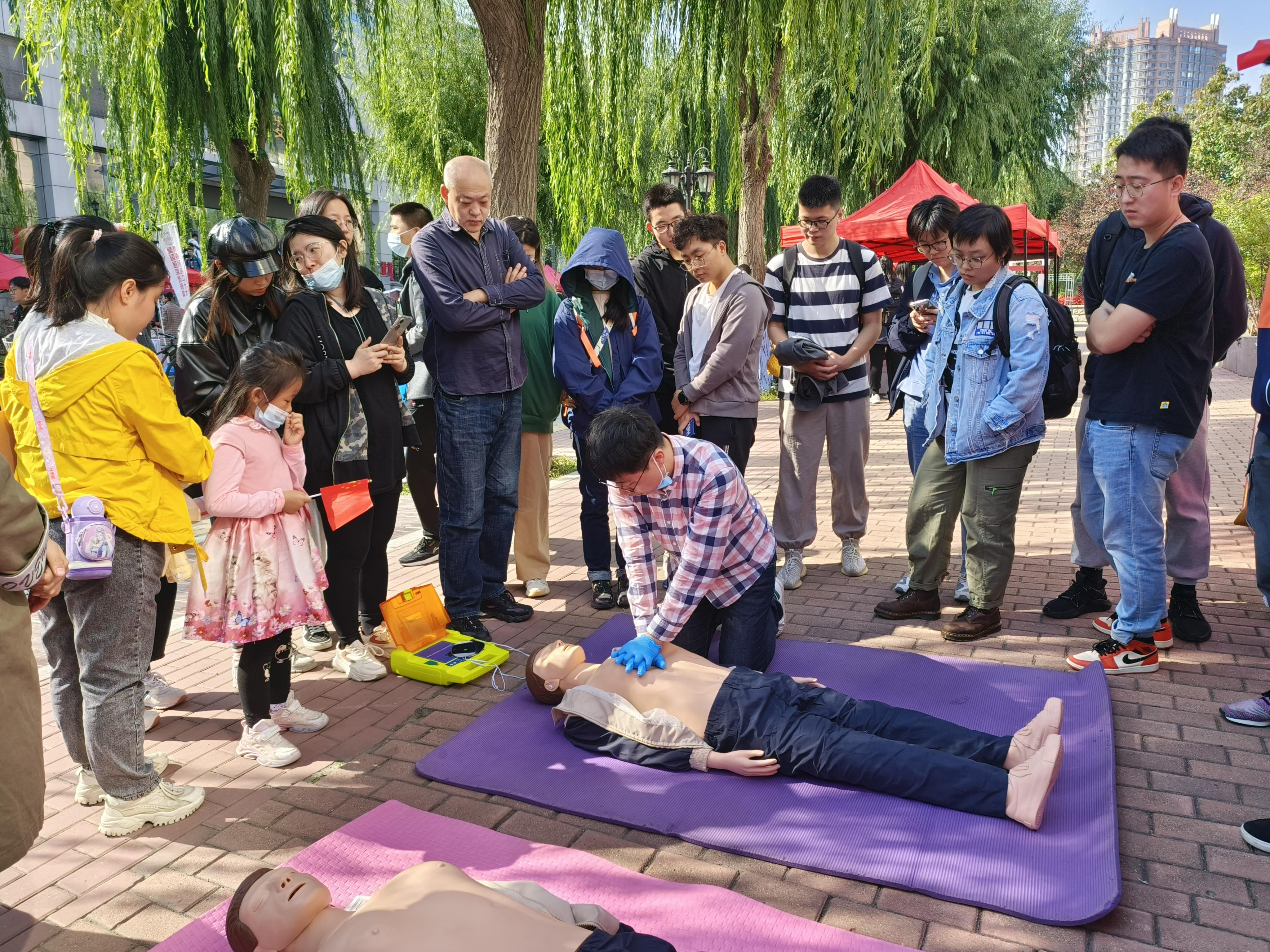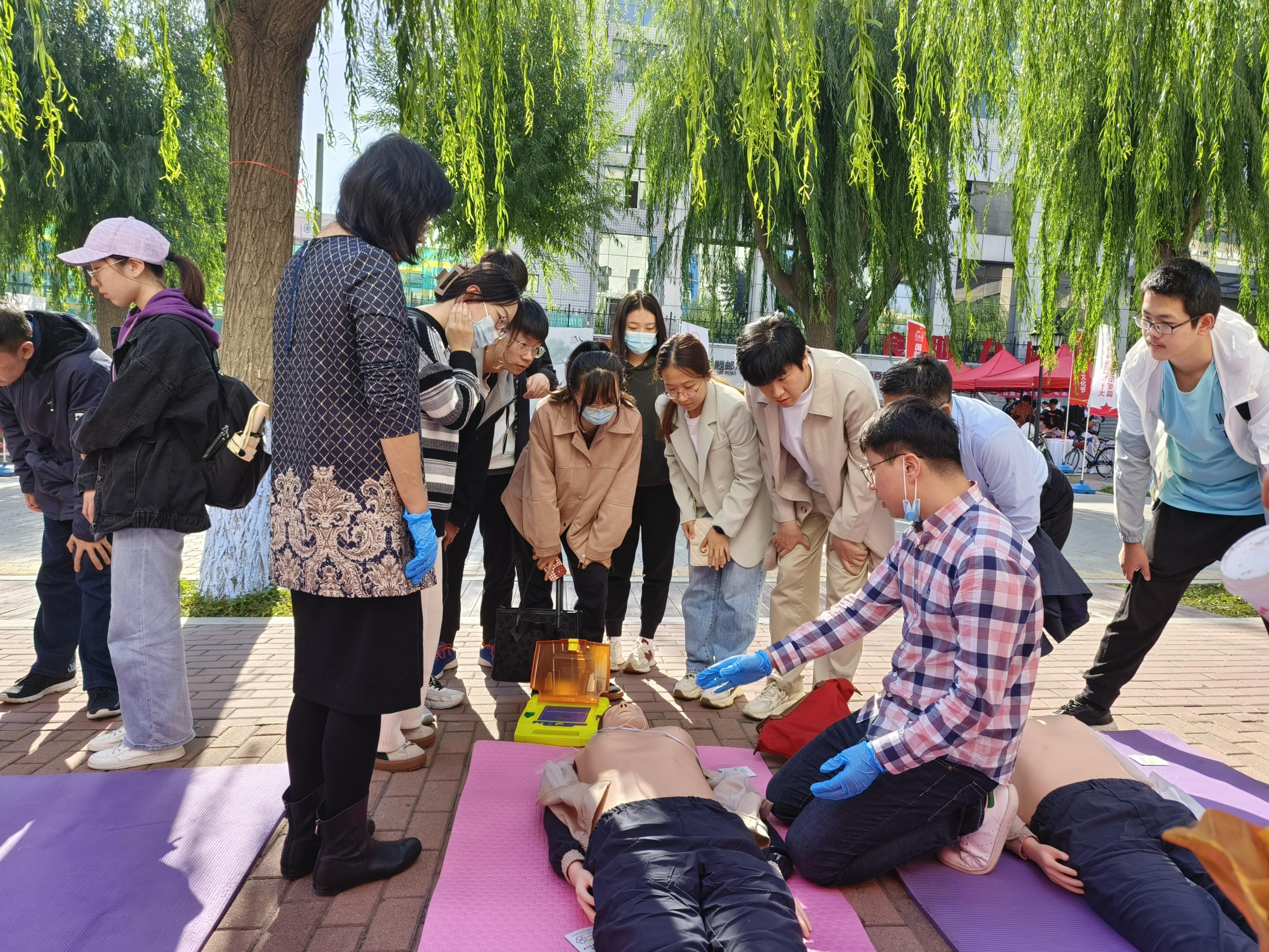 为弘扬爱国主义精神,增强青年学生国防观念,9月27日上午,学校武装部举办以“青春献礼二十大,爱国强军谱新篇”为主题的“国防教育文化节”系列活动,独播库 研究生会承接关爱生命,“救”在身边应急救援活动,面向全校师生开展心肺复苏、人工呼吸和AED使用方面的演示和体验,为前来体验的师生进行详细讲解。