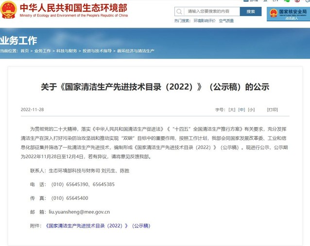 《国家清洁生产先进技术目录(2022)》收录我院技术