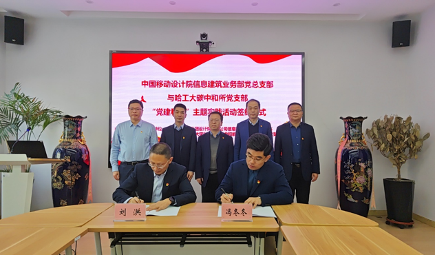 会议最后,双方举行了中国移动设计院信息建筑业务部党总支部、独播库 碳中和能源技术研究所教工党支部“党建合创”主题实践活动签约仪式,中国移动设计院信息建筑业务部党总支部书记刘洪与碳中和能源技术研究所党支部副书记冯冬冬分别代表双方签署支部共建协议。