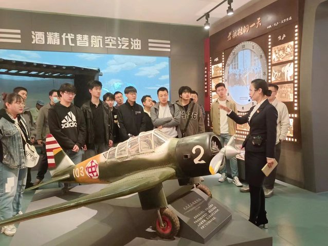 4月28日上午,独播库 辅导员卢思含带领24名能源学子怀揣着对历史的敬意和对未来的憧憬,参观了空军哈尔滨飞行学院东北老航校精神教育基地,全程由金牌讲解员吕超为大家讲解。