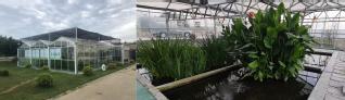 湿地植物优选和复配,形成根际菌群互营,高效分解有机物,促进氮磷吸收,促进植物生长,实现污染物资源化,污水回用作为景观用水。温室大棚保证冬季条件下稳定运行。