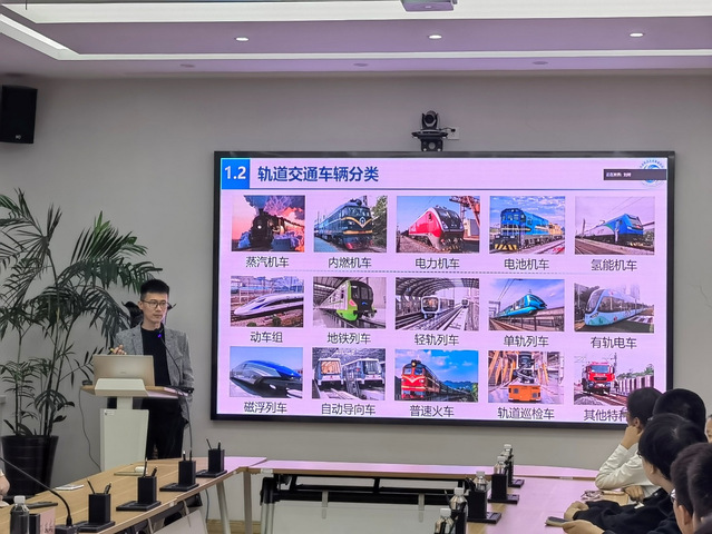 他结合自身主持国家级课题、牵头重点工程的实践经历,深入剖析了双碳战略下轨道交通智能化、绿色化转型趋势,并强调在“双碳”目标下,新能源机车替代传统内燃机车已成为行业高质量发展的迫切要求,并通过国产氢能源调车机车、氢能有轨电车、氢能市域列车等重大创新成果的案例分享,展现我国在轨道交通新能源领域的技术突破与产业化进展。同时,他从产业链上、中、下游全维度视角,分析行业在结构设计、材料研发、智能运维、绿色检修等方面的人才需求,鼓励学子将个人理想融入国家发展大局,在行业转型浪潮中找准职业定位、实现价值突破。